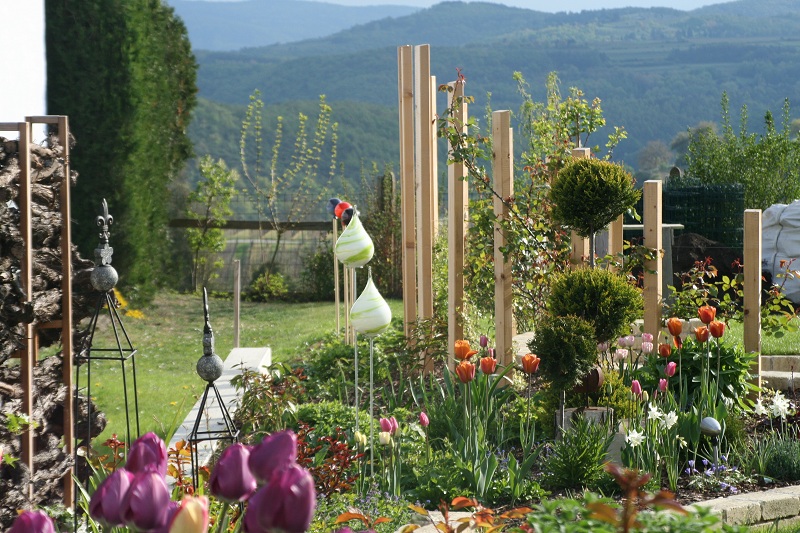 Unser Garten ist in verschiedene Bereiche unterteilt, der Blumengarten